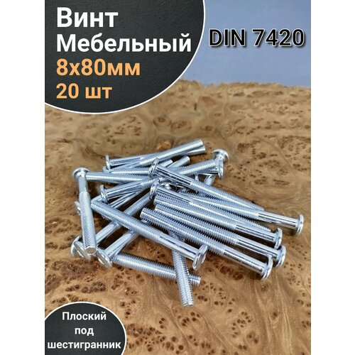 Винт мебельный 8х80 плоский под шестигранник DIN7420,20 шт