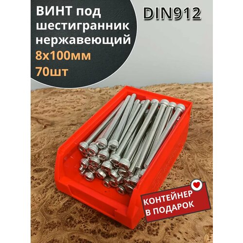 Винт нержавеющий шестигранник М8х100, DIN912, 70шт контейнер