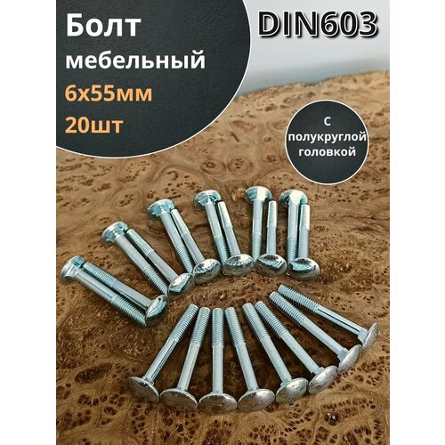 Болт мебельный 6х55 полукруглая головка ОЦ DIN 603,20 шт.