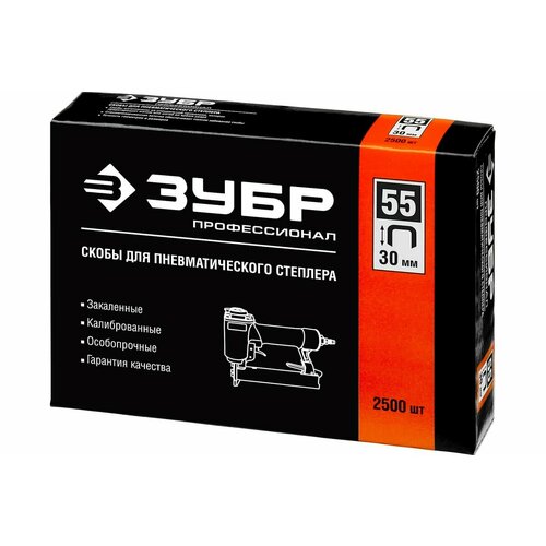 Особотвердые тонкие скобы ЗУБР Профессионал широкие, тип 55, 30 мм, 2500 шт. 31855-30