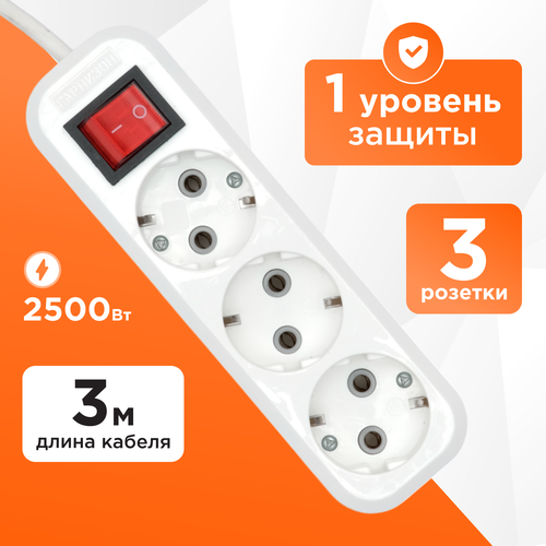 Удлинитель Гарнизон 10А 3м с выключателем и заземлением 1 уровень защиты EPB-G3-W-3