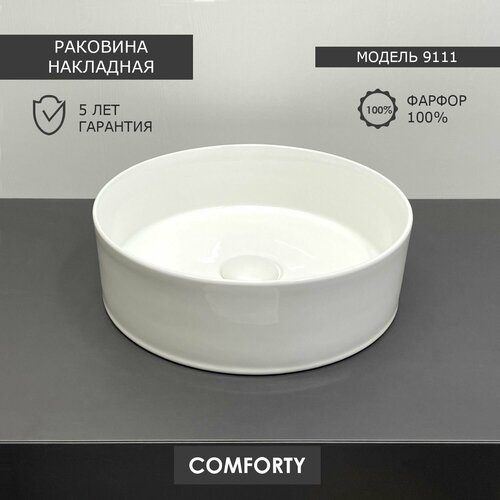 Накладная круглая раковина 35 см для ванной на столешницу Comforty 9111 белая из фарфора
