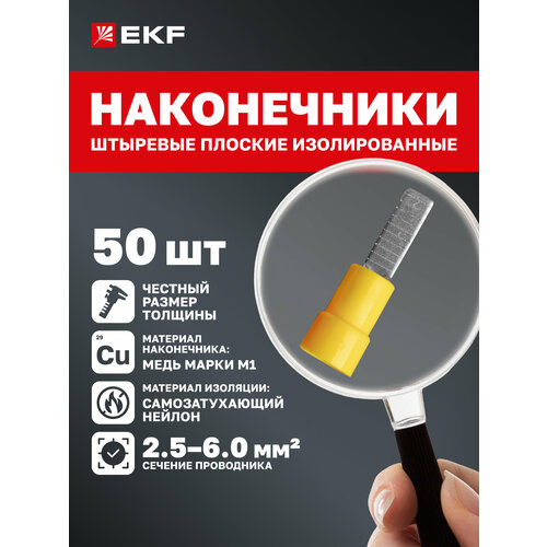 Наконечник для проводов EKF PROxima обжимной штыревой плоский изолированный ншпи 2.5-6.0 (50 шт. в упаковке)