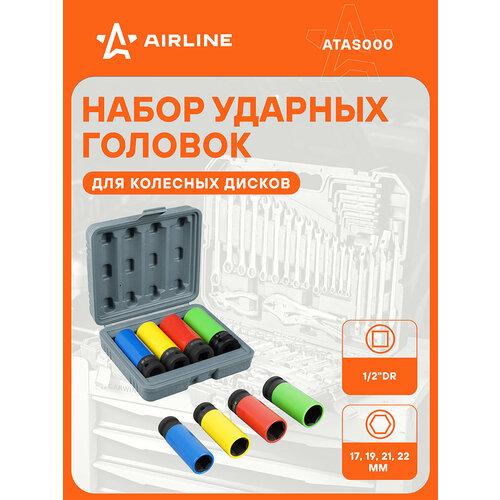 Набор головок ударных для колёсных дисков 1/2" DR шестигранных удлинённых 4 пр. (17,19,21,22мм) ATAS000 AIRLINE