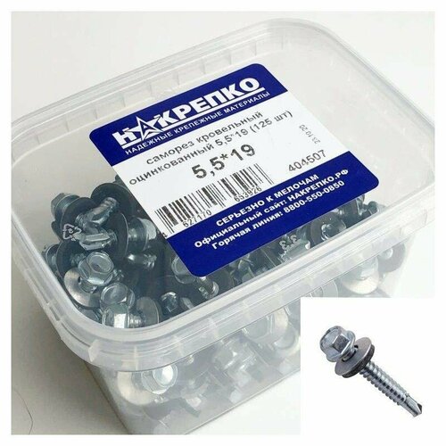 Саморез кровельный оцинкованный 5,5*19 (125 шт EC) накрепко 404507 (арт. 461887)