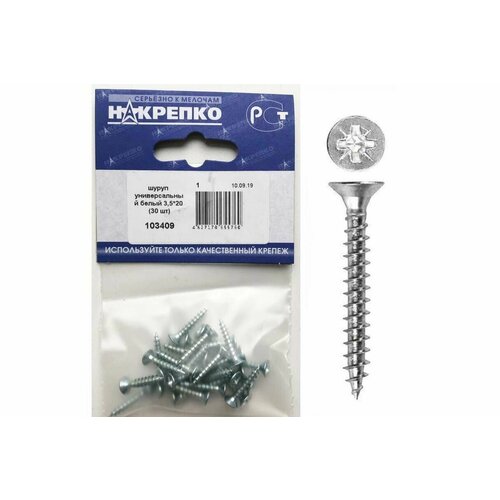 Шуруп универсальный Накрепко, 3.5х20 мм, из стали, серебристый, оцинкованный, 30 шт в наборе