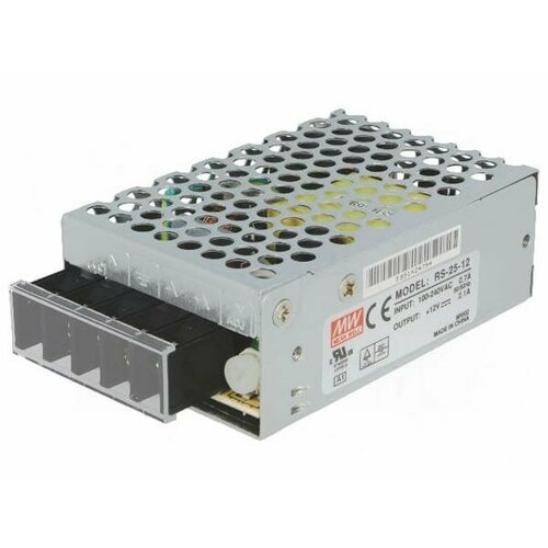 Блок питания MEAN WELL RS-25-12, Блок питания: импульсный, модульный, 25,2Вт, 12ВDC, 2,1А, OUT: 1, 1шт