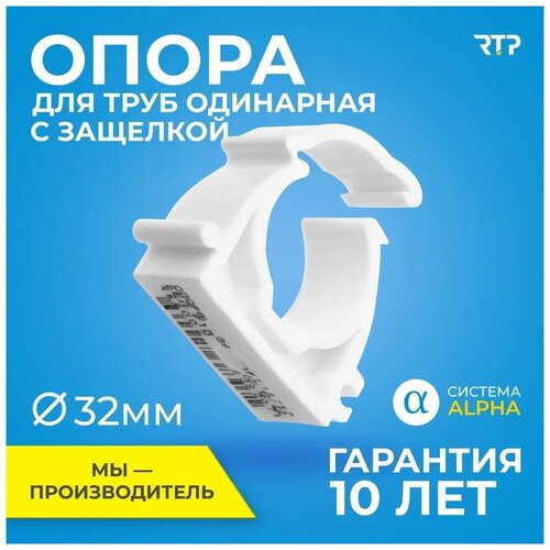 Опора / клипса / кронштейн, полипропилен, ППР, RTP для труб одинарная с защелкой, PPR, D32