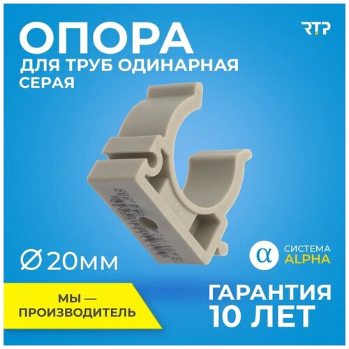 Опора / клипса / кронштейн полипропилен, ППР, RTP для труб одинарная, серая, PPR, D20