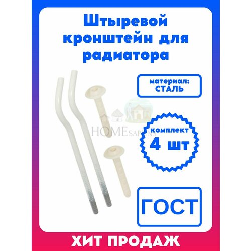 Кронштейн для радиатора штыревой 4 штуки, комплект крепежей для чугунных радиаторов, батарей ссср