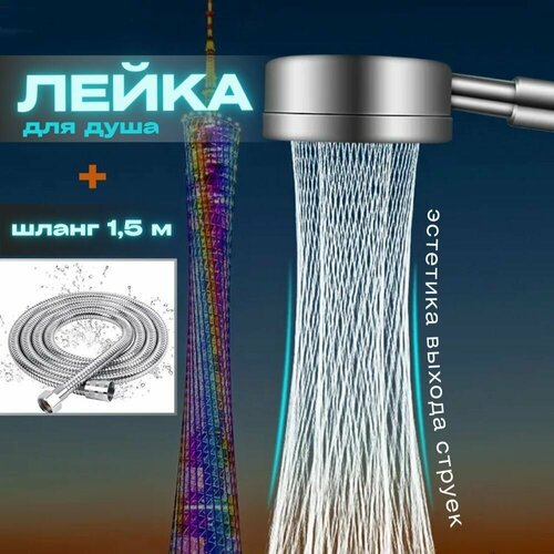 Душевая лейка Lykrua&Luxumy, со шлангом, серебристая, нержавеющая сталь