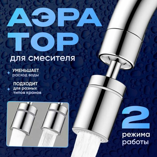 Водосберегающая насадка аэратор на кран смеситель, с фильтром, поворотная, 360 градусов, для кухни и ванной, 3 режима работы, Чёрный