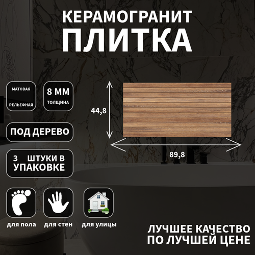 Размеры плитки составляют 44.8x89.8x0.8 см, что позволяет использовать ее для отделки больших площадей.