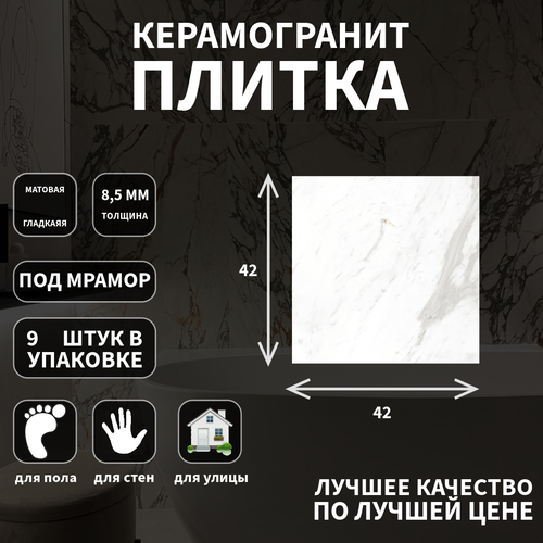 Керамогранит Cersanit, Dina, эффект: мрамор, поверхность: матовый, 42х42х0.85