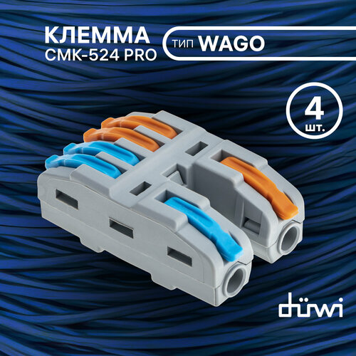 Клеммы разветвительные рычажковые 2х4 duwi CMK-524 PRO 4 кв. мм серые 4шт 26660 4