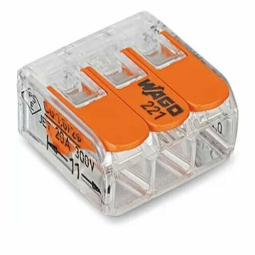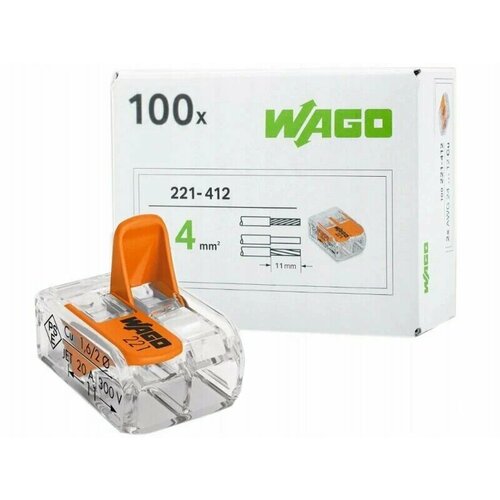 Клемма WAGO 221-412, 50 шт., коробка, прозрачный/оранжевый
