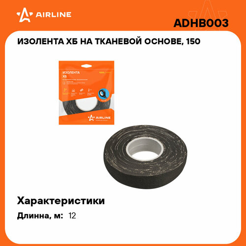 Изолента ХБ на тканевой основе, 150 г, прорезиненная (19мм*0,4мм*12м), черная ADHB003 AIRLINE