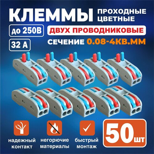 Клемма соединительная проходная Iron Flex для 2-х проводников сечением 0,08-4 мм² цветная ,50 шт.