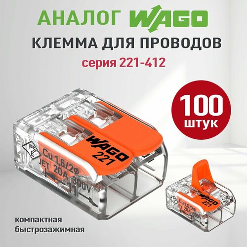 Соединительные клеммы Wago (Аналог Wago) для проводов, ваги 221-412, 100шт