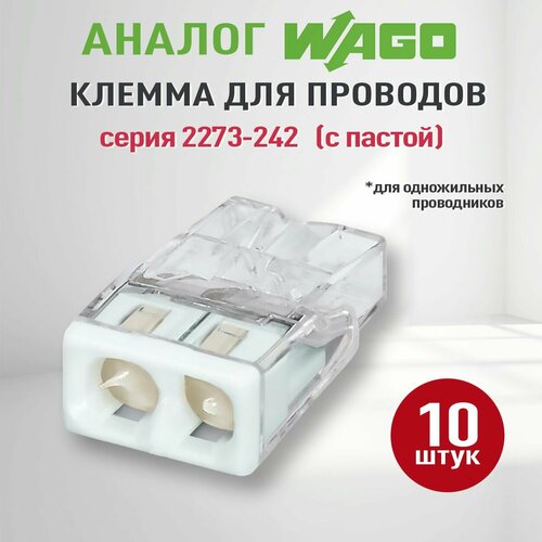 Соединительная клемма Wago (Аналог Wago) 2-х проводная самозажимная с пастой, ваги 2273-242, 10шт