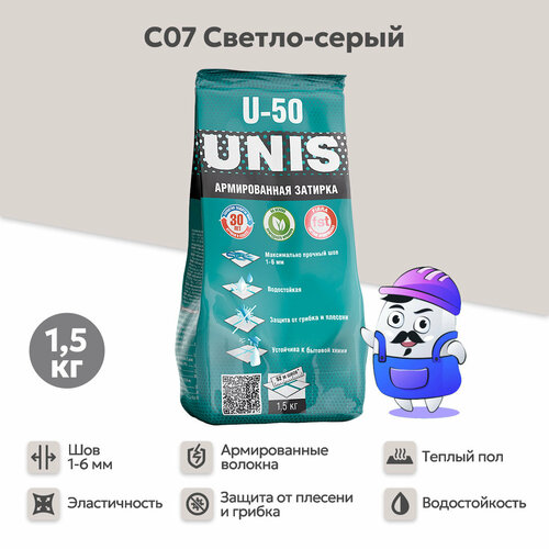 Затирка цементная армированная UNIS (ЮНИС) U-50 Светло серый С07 1,5кг