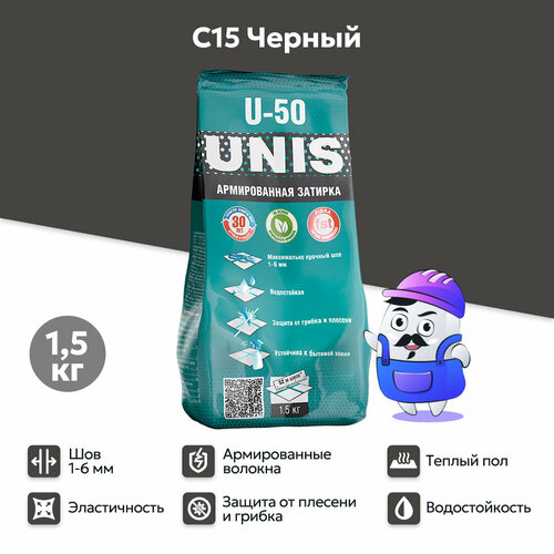 Затирка цементная армированная UNIS (ЮНИС) U-50 Черный С15 1,5кг