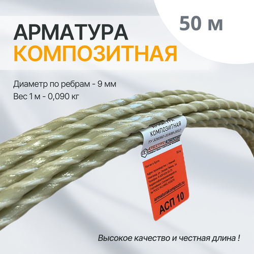 Арматура композитная 10 мм ТУ (D 9 мм) стеклопластиковая 50 м. п. бухта "Арматура Композит" желтая