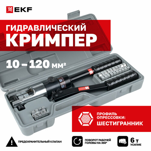 Пресс гидравлический ручной ПГРс-120 EKF Expert для опрессовки алюминиевых и медных кабельных наконечников и гильз