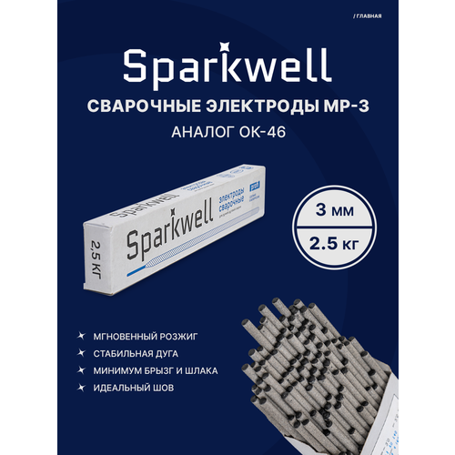Сварочные электроды 3мм SPARKWELL МР-3 диаметром 3мм, 2,5 кг в коробке