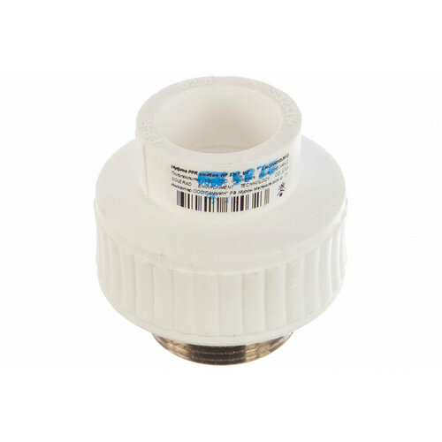 белыйМуфта полипропиленовая комбинированная с наружной резьбой предназначается для соединения полипропиленовых труб (с армированием или без) с металлическими трубами или запорными клапанами в систему трубопровода.