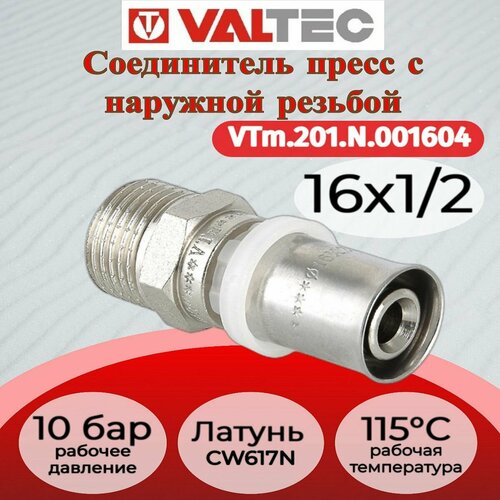 Соединитель пресс с переходом на нар. р. 16х1/2" Valtec VTm.201. N.001604