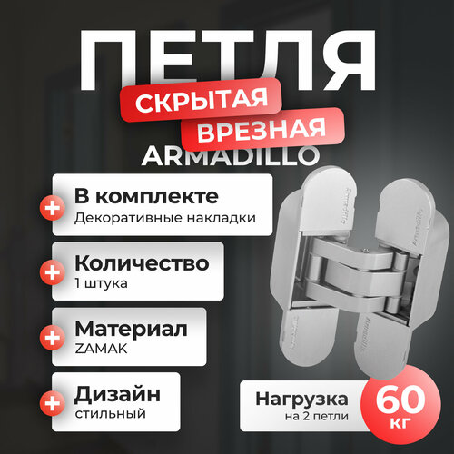 Петля дверная Armadillo скрытой установки, матовый хром, U3D6000