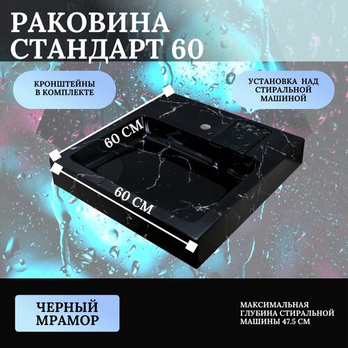 Раковина над стиральной машиной Mareon Стандарт 60 черный мрамор, 600х600
