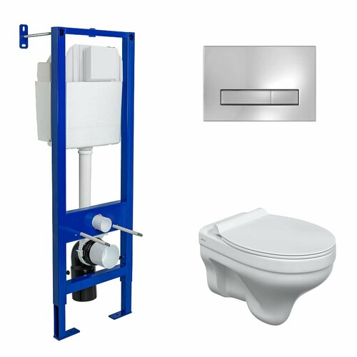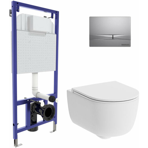 Комплект унитаза с инсталляцией Berges Wasserhaus Novum 042419 с сиденьем Микролифт и Белой Хром глянец клавишей смыва