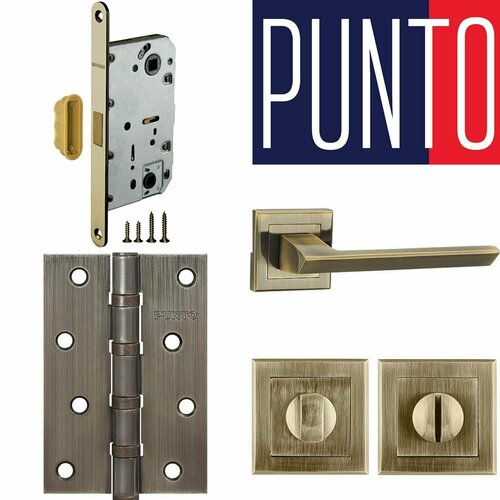 Комплект дверных межкомнатных ручек PUNTO с защелкой и врезными универсальными петлями FUARO, сатинированный хром