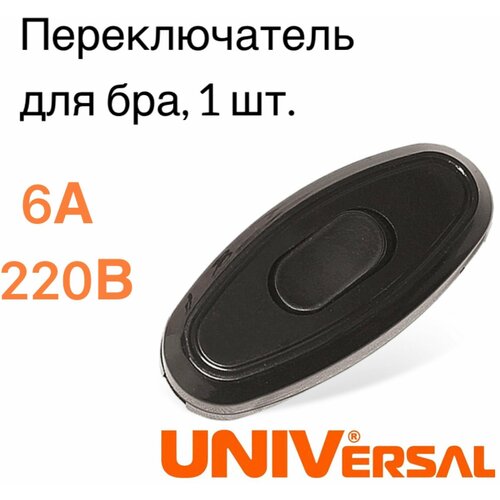 Выключатель/переключатель UNIVersal проходной на шнур для бра чёрный/черный 6А 220 В (А0106), 1 шт.