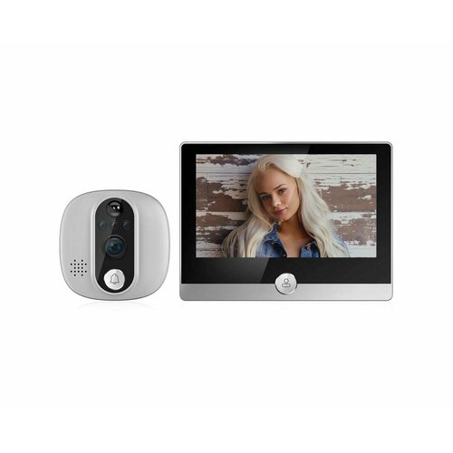 Цветной HD видеоглазок Tuya Wi-Fi для двери iHome Mod: Sw1-Tuya (O46215TU) с датчиком движения и записью на SD карту. Экран 4,3 дюйма. Камера 2MP