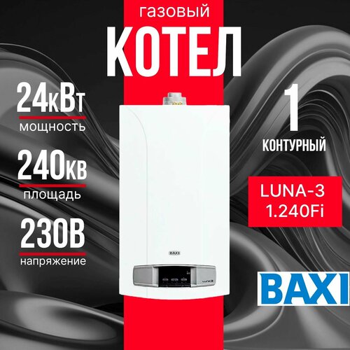 Котел газовый одноконтурный настенный Baxi LUNA-3 Comfort 1.240Fi, + трехходовой клапан + датчик бойлера