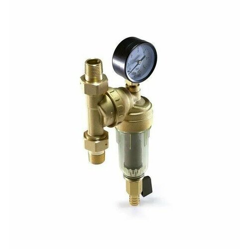 Фильтр свободного вращения самопромывной с манометром для холодной воды 1/2"НР, TIM