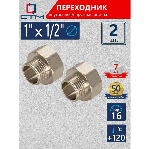 Переходник для трубы 1"х1/2" внутренняя-наружная резьба CTM (2 шт.)