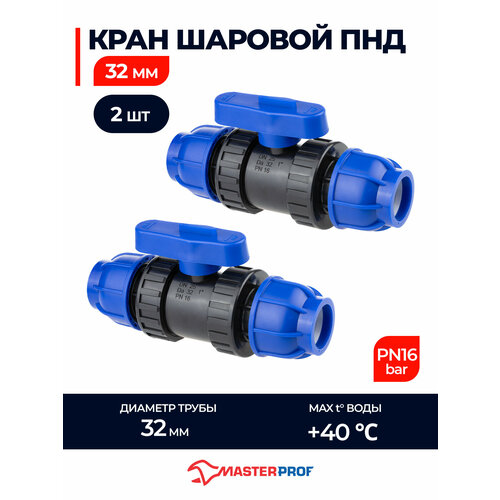 Кран шаровой ПНД 32 обжимной компрессионный, 2 шт.