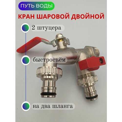 Кран водоразборный шаровый универсальный двойной латунный (Нар) - 1/2" (штуцер быстросъём)