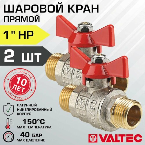 Кран шаровой 1" нар-нар (2 шт) VALTEC BASE с рукояткой-бабочкой, полнопроходной, арт. VT.219. N.06