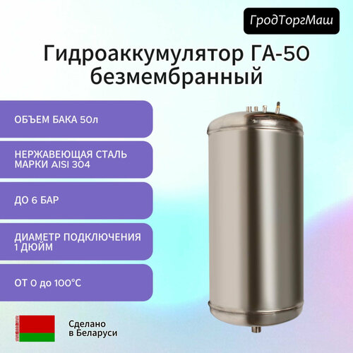 Гидроаккумулятор Гродторгмаш ГА-50, безмембранный, нержавеющая сталь, 50л