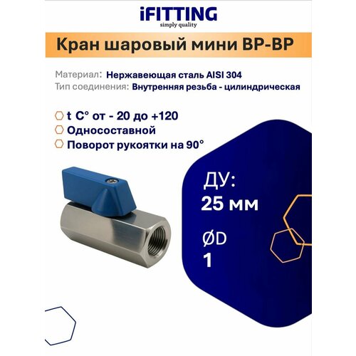 Кран шаровый 1 дюйм мини нержавеющий односоставной Ду 25 вр/вр AISI 304