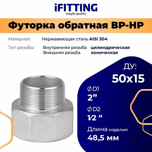 Футорка обратная 2x1/2 нержавеющая AISI304 Ду 50x15 iFitting
