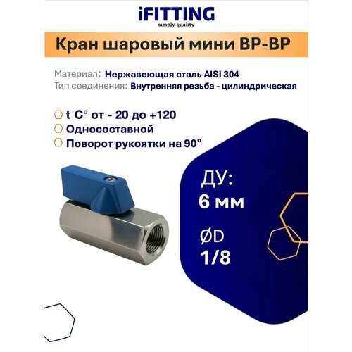 Кран шаровый мини нержавеющий односоставной Ду 6 1/8" вр/вр AISI 304