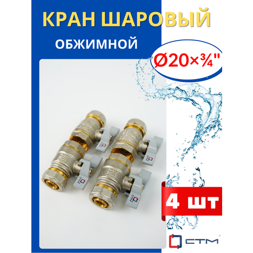 Кран шаровый 20х3/4 цанга, внутренняя резьба, ручка-бабочка (СТМ) 4шт.