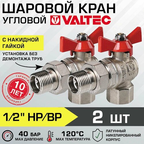 Кран шаровой 1/2" вн-нар (2 шт) VALTEC BASE с полусгоном, угловой, VT.228. N.04