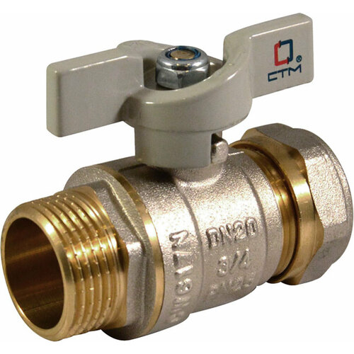 Кран шаровой СТМ для воды с наружной резьбой 20 x 3/4', гайка обжим, бабочка
